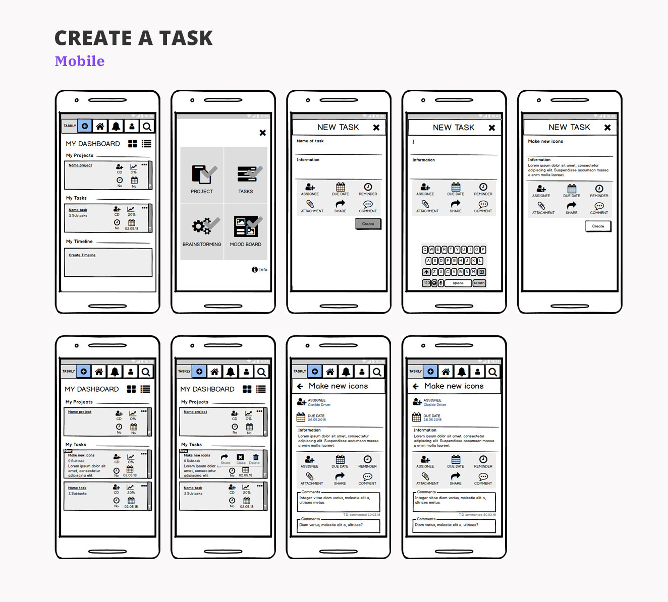 Wireframes are a great way to refine continuously the user flows, design and features ideas.
