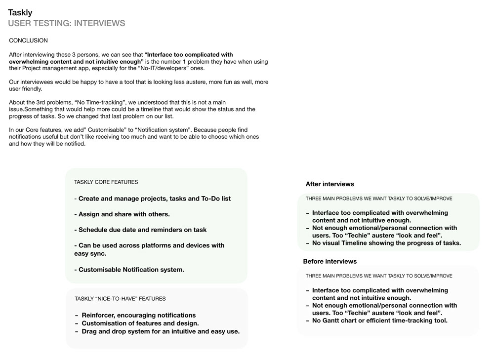 After the survey, the 5 core Features of Taskly were decided for the MVP. But i had to continue with some interviews to make sure the MVP for Taskly was the right one.