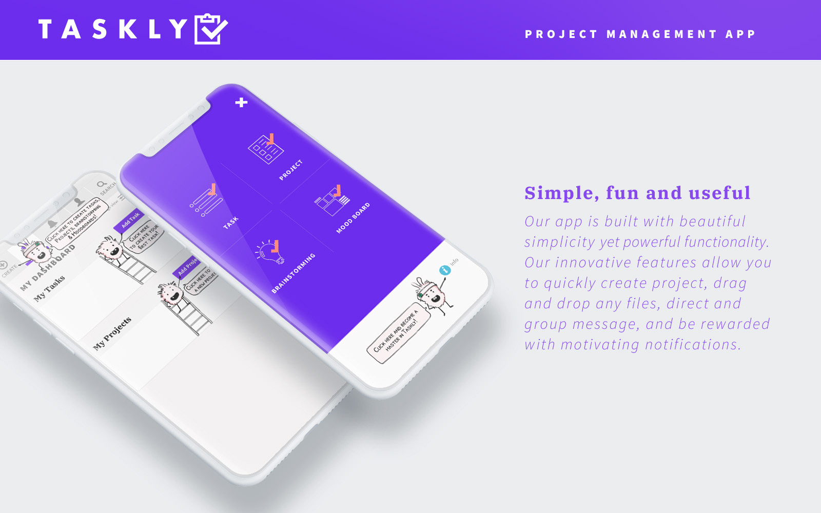 As a graphic designer, I wanted to make sure Taskly would be a useful tool to make work easier. Helping to organise people to avoid stress and provide smoother and effective results.